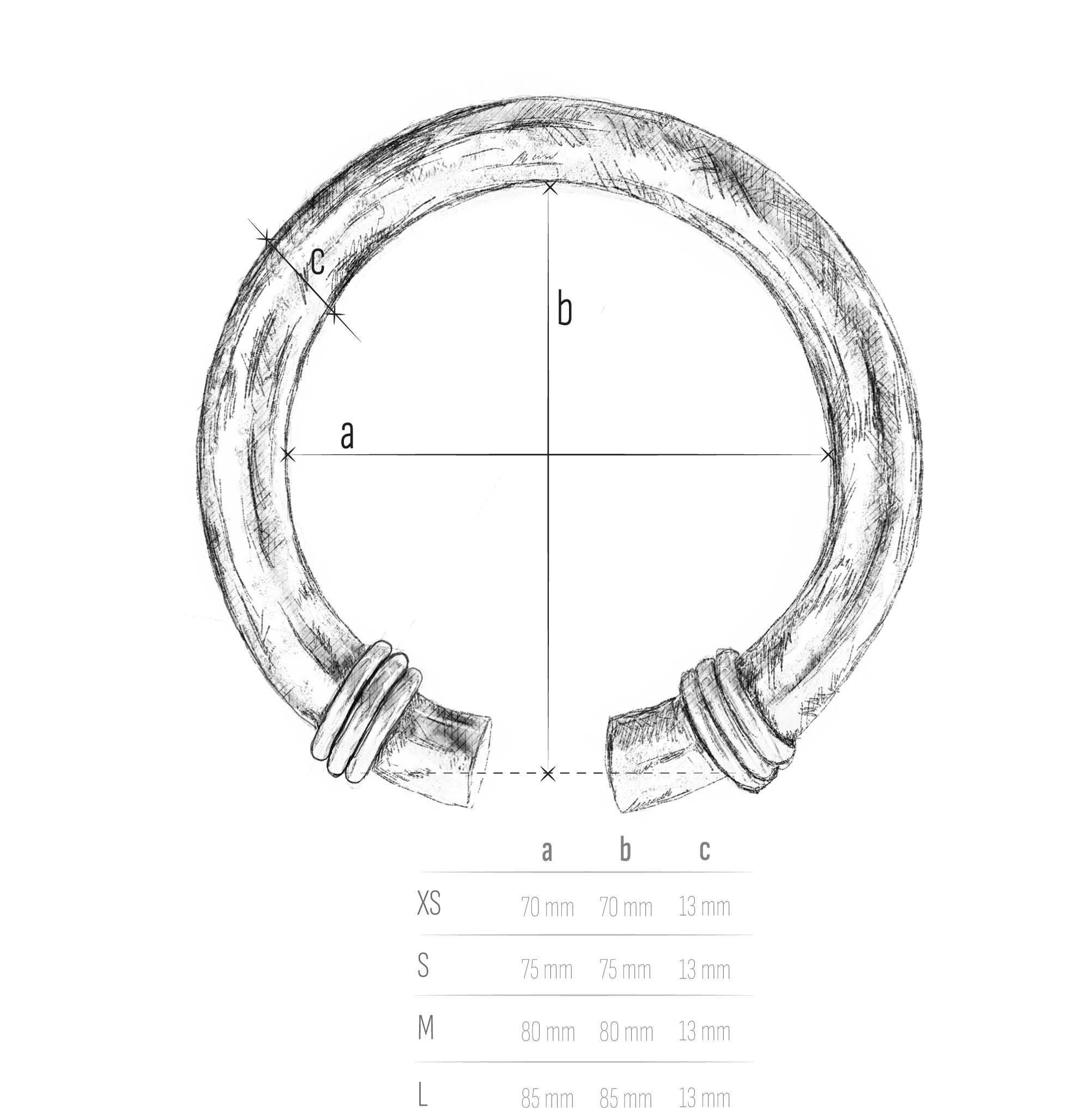 This ensures your cuff wraps comfortably while staying secure. If your size is bigger or smaller than the size options shown in the table, please contact us with your circumference measurements at the email address: Soskic.elisabetta@gmail.com and we will make a custom size for you.